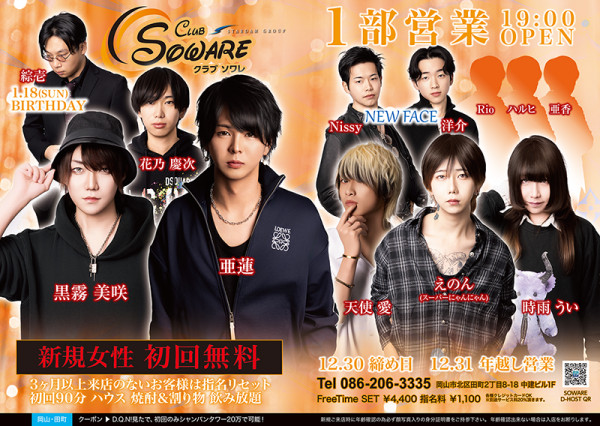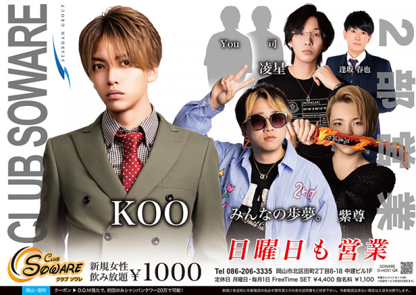 club SOWARE 2部 ソワレホストクラブ岡山市北区田町2丁目8-18 中建ビル1F