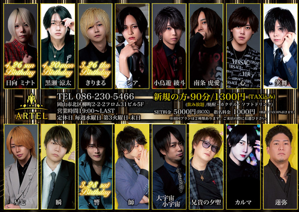 エンターテイメント性溢れるスタッフ達と、この時期だからこそ癒しを求める人達に最高の夜をお届けします!岡山市北区中央町6-26タイムビル1F- 定休日