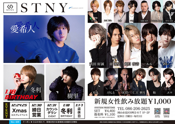 CLUB STNY エスティ二-ホストクラブ岡山最大規模!1F・2F合わせて80坪OVERのダブルフロア! その名も『Club STNY』